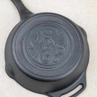 Nettoyez bien la poêle en fonte avec de l'eau chaude avant la première utilisation. Grâce à la surface pré-traitée (culottée), vous pouvez utiliser votre poêle en fonte immédiatement, sans avoir besoin de la culotter. Les premières fois, ne cuisinez pas d‘aliments acides, car cela peut attaquer la patine, la couche protectrice de la poêle en fonte