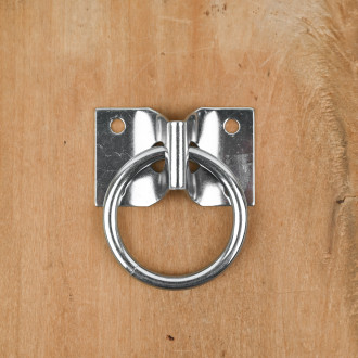 L’anneau robuste de 7 mm d'épaisseur, présente une ouverture intérieure de 50 mm. Il est soudé sur une platine de 70 x 45 mm, percée de quatre trous pour fixation.
