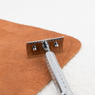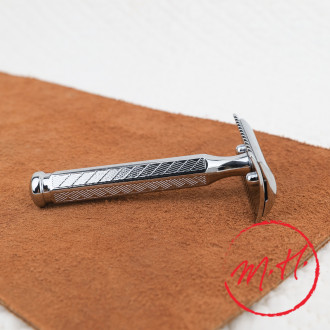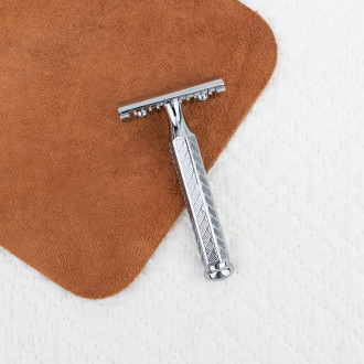 Pour un rasage rapide tout en souplesse avec un manche court et hexagonal en laiton chromé qui le rend ultra-maniable.