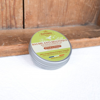 Baume-crème répulsif et apaisant anti-moustique, 100% d’ingrédients d’origine naturelle.