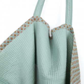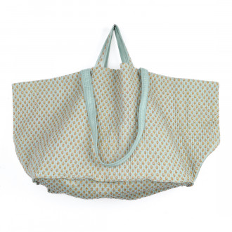 Astucieux par son grand format, ses deux paires d'anses et sa légèreté, ce sac fourre-tout est confectionné dans un tissu 100% coton matelassé façon boutis, lui conférant une sensation agréable au toucher et au porter.