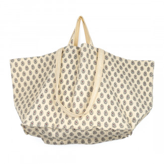 Astucieux par son grand format, ses deux paires d'anses et sa légèreté, ce sac fourre-tout est confectionné dans un tissu 100% coton matelassé façon boutis, lui conférant une sensation agréable au toucher et au porter.