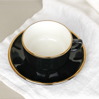 Tasse et soucoupe noire filet or