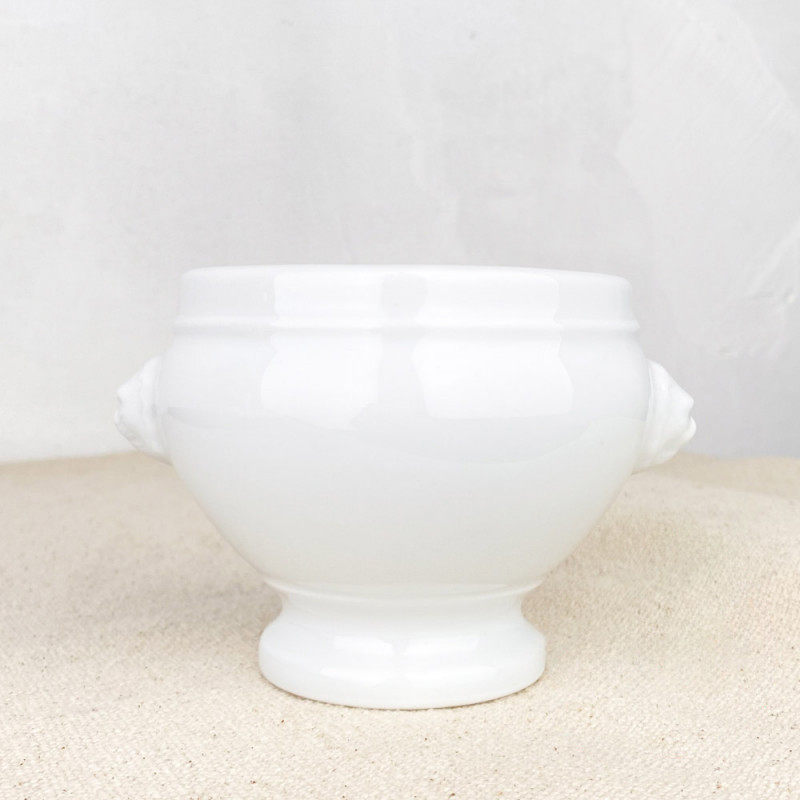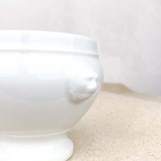 Tout comme la soupière, le bol à soupe "tête de lion" en porcelaine blanche fait partie des incontournables de la vaisselle à la française.