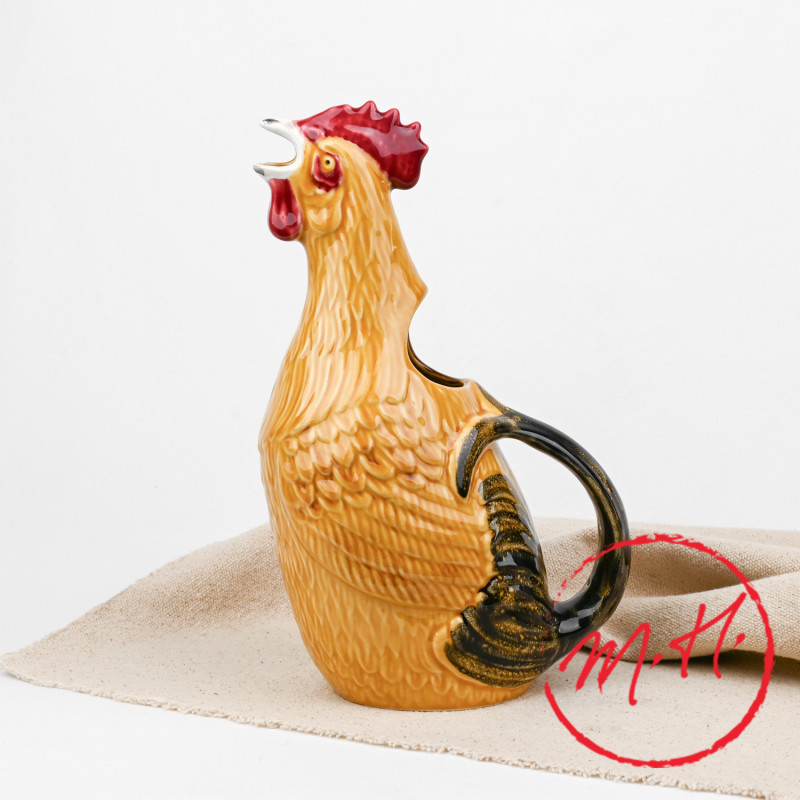 Entièrement moulée en barbotine peinte à la main, cet élégant pichet saura orner une table à la décoration champêtre et agricole.