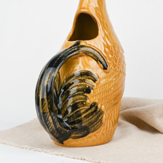 Cette carafe est un produit de l'atelier Bordallo Pinheiro, marque portugaise fondée en 1884, connue pour ses céramiques artistiques inspirées de la nature qui mêle tradition et modernité, produisant des pièces à la fois décoratives et fonctionnelles, toujours dans le respect de l'artisanat de qualité et de la durabilité.