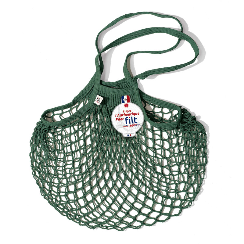 Filet à provisions traditionnel en 100% coton bio, format 40 x 40 cm avec de grandes anses pour le porter à l'épaule.