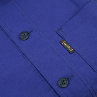 Cette veste est fabriquée par la manufacture française Le Laboureur, qui réinvente avec passion depuis les années 1950 la tradition du bleu de travail dans son atelier en Bourgogne.