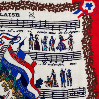 Grand foulard carré évoquant notre hymne national créé par Rouget de Lisle le 14 juillet 1792.