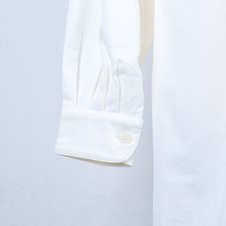 Tout en lin, la blouse est très ample pour des mouvements aisés sans avoir chaud. On aime la couleur écrue du lin pour un look simple avec un beau col Mao et des boutons fermants sur la poitrine.